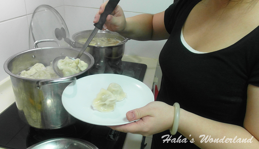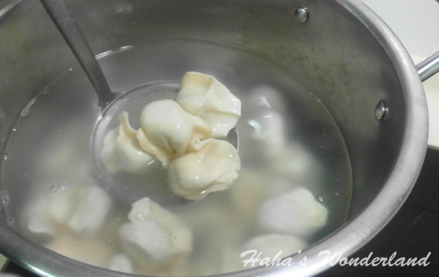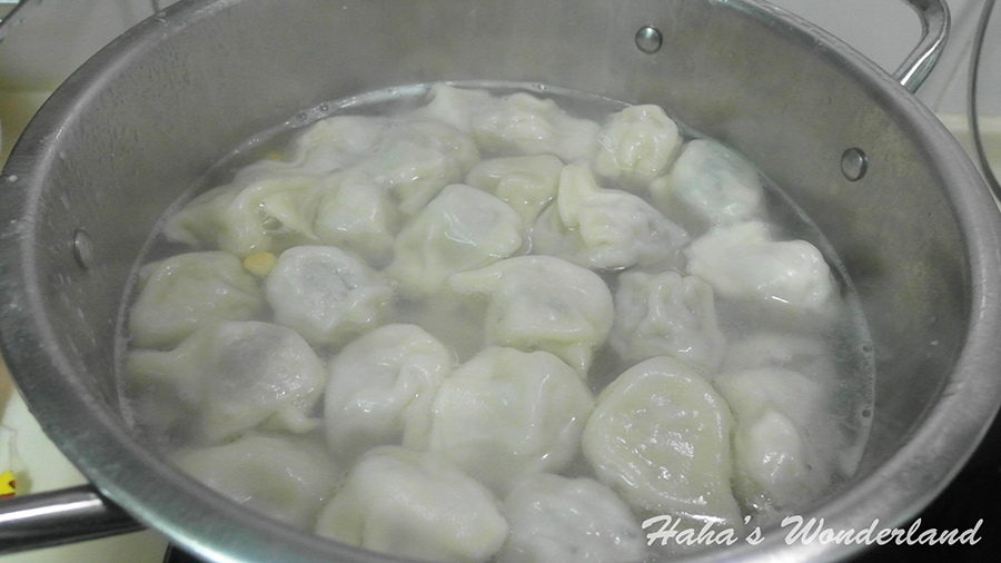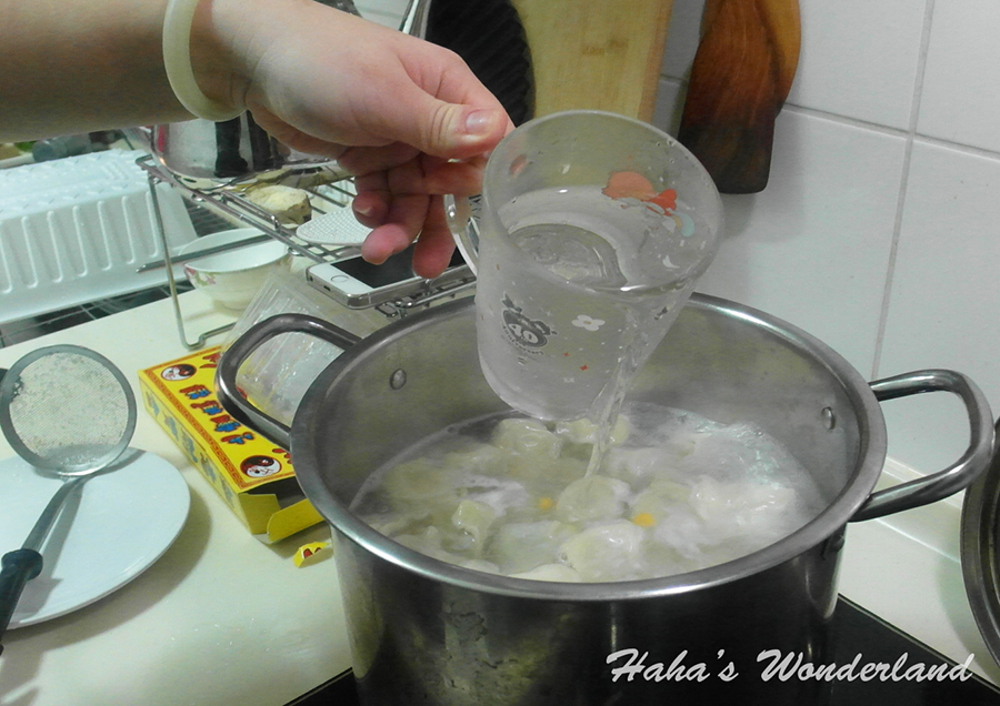 step 3 水煮滾時可以依個人放點香油(避免沾黏),接著就可以把水餃放入滾水中啦~